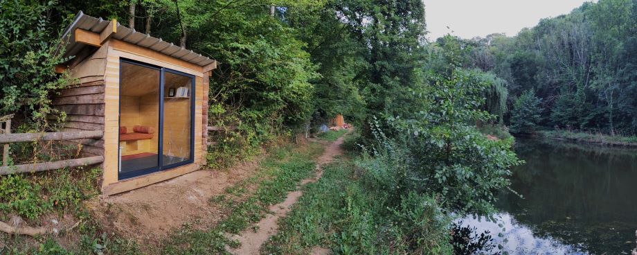Il est placé au bord de l’étang, entouré par les bois. Totalement ouvert sur l’eau et l’extérieur, il invite à lâcher prise dans une ambiance paisible et naturelle, sans déguisement ni faux semblant.
